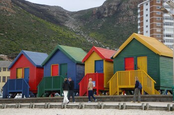 Next stop: Muizenberg. This vibrant southwest suburb of Cape Town is known for a few things - surfing, colorful beach huts, and supporting a young, active population. Despite the sun only peeking through the clouds for a brief moment, the waters, which face False Bay, were full of people enjoying the water that was significantly warmer than those on the eastern coast. Noel would go on to explain how this was a result of the clashing Benguela and Agulhas Currents. Highrise apartment buildings peeked over the red, yellow, green, and blue rows of changing boxes, which in themselves provided fantastic photo opportunities with the background of the foothills. In our opinion, this beach town made a much better impression than Camps Bay, as it seemed more livable, genuine, and full of life. Combined with the miles of sandy beaches, this quickly became a new favorite part of Cape Town for my parents and I.