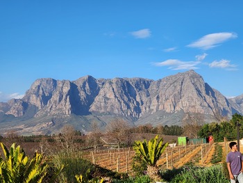 Introducing the Victoria Wharf Shopping Centre - a very modern and clean mall, where we would soon spend every evening eating and shopping. Right at the Waterfront was a line of restaurants inviting any and all passersby to come in and dine. And that we did upon recommendation, first at Karibu, which unbenownst to us at the time was simultaneously rated the best African cuisine, steakhouse, and waterside restaurant, as well as best South African cuisine by Haute Grandeur. An excellent way to get to know Braai - the South African barbeque tradition, consisting of various grilled game including but not limited to ostrich, springbok, kudu, and warthog. My parents' new obsession: Beyerskloof Pinotage 2020 wine. And my new obsession, the popular South African dessert: koeksisters. A colorfully-dressed local song and dance group came thundering down the main restaurant row, singing traditional songs much to the appeal of the hoards of tourists sat outside. By this time the winter chills settled in, which was odd coming from hot Colorado.