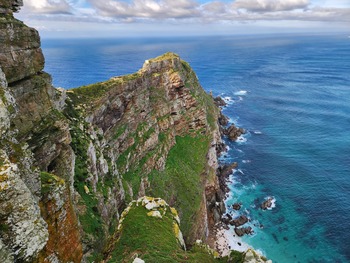 Where there is normally a funicular to take tourists to the Cape of Good Hope Old Lighthouse lookout point, was a replacement bus service. This bus hauled a load of tourists up an insane grade to the top of the hill, from where it was only a short hike to reach the lighthouse itself. There it was, the end of the continent. A huge grassy cliff face with turquoise waters crashing into the rocky beaches hundreds of feet below welcomed us here. My mom and I stood there in awe as we processed that we really were looking at the famed southeastern tip of the African continent.